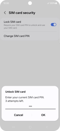 Press the indicator next to "Lock SIM card" to turn the function on or off.