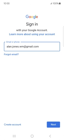 If you don't have a Google account, press Create account and follow the instructions on the screen to create an account.