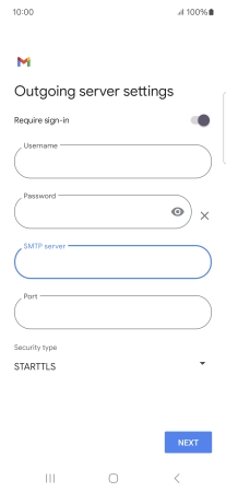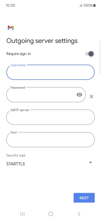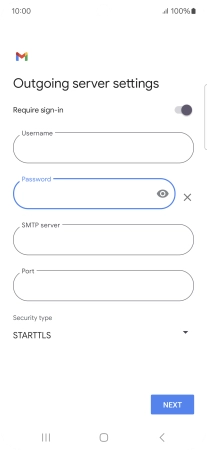 Press the indicator next to "Require sign-in" to turn the function on or off. Please note that if you're using Vodafone's outgoing server, turn off SMTP authentication and leave the username and password fields empty.