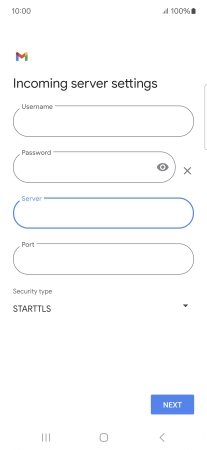 Press the field below "Server" and key in the name of your email provider's incoming server.