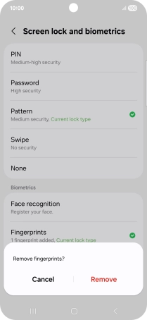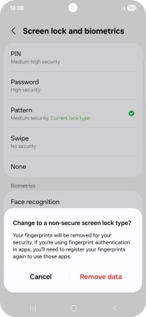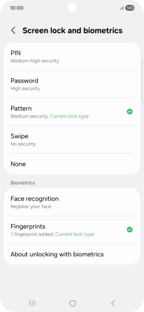 Press Screen lock and biometrics and key in the additional phone lock code you created earlier.