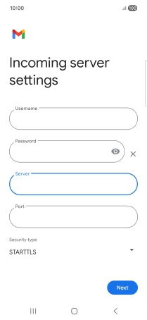 Press the field below "Server" and key in the name of your email provider's incoming server.