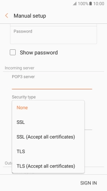 Press the field below "POP3 server" and key in the name of your email provider's incoming server.