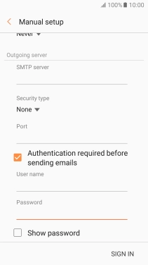 Press the field below "SMTP server" and key in the name or IP address of your email provider's outgoing server. Please note that if you can't send email messages when using your email provider's outgoing server, key in smtp.vodafone.net.au (Vodafone's outgoing server).