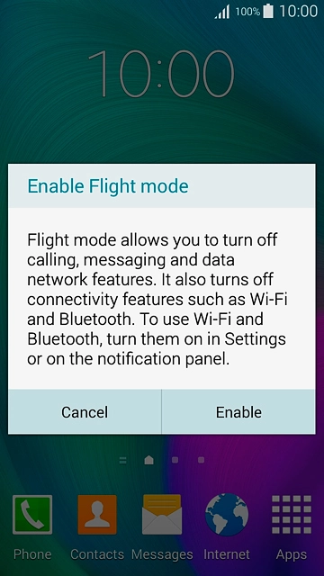 If you turn on flight mode:Press Enable.