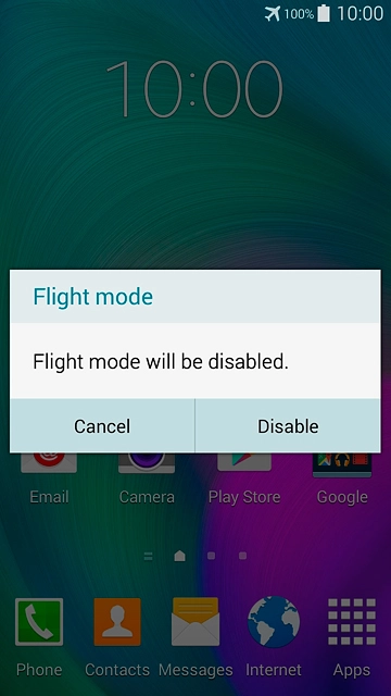 If you turn off flight mode:Press Disable.