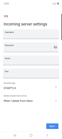 Press the field below "Server" and key in the name of your email provider's incoming server.