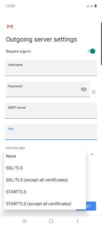 12. Enter outgoing server