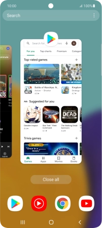 To end all running applications, press Close all.