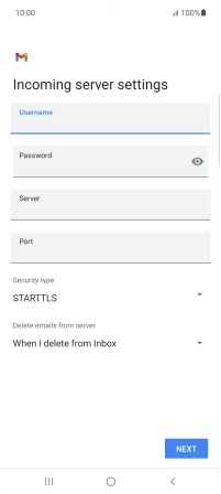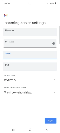 Press the field below "Server" and key in the name of your email provider's incoming server.