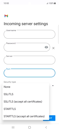 Press the field below "Server" and key in the name of your email provider's incoming server.