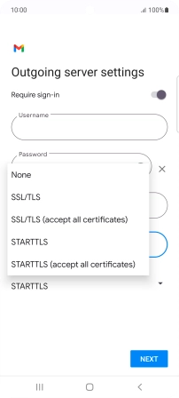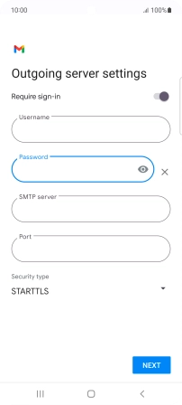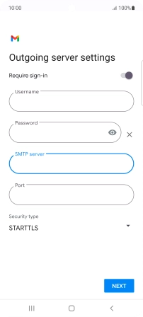 Press the indicator next to "Require sign-in" to turn the function on or off. Please note that if you're using Vodafone's outgoing server, turn off SMTP authentication and leave the username and password fields empty.