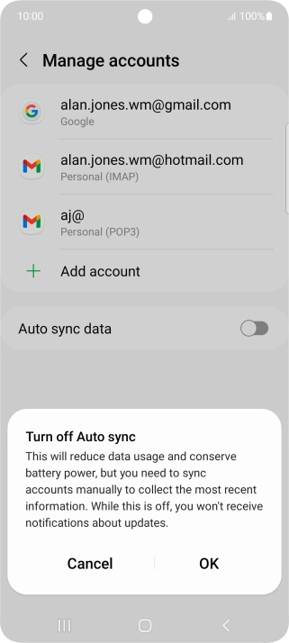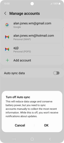 Press the indicator next to "Auto sync data" to turn the function on or off.