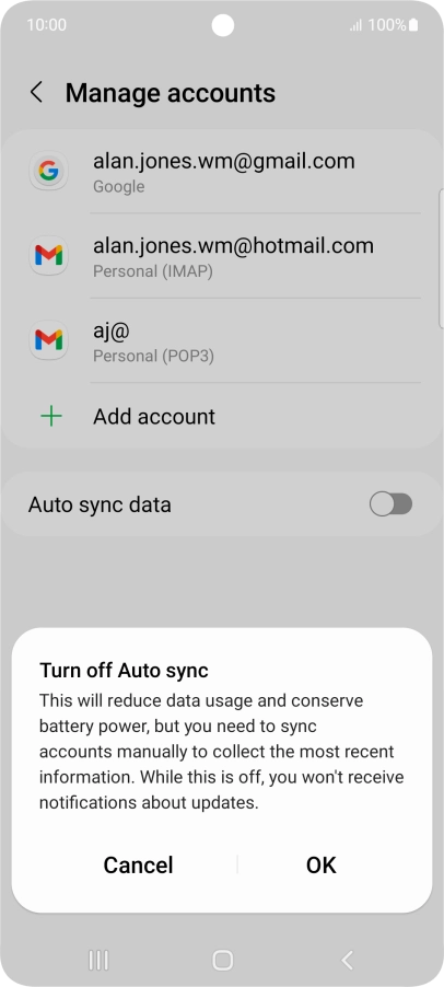 2 Turn automatic synchronisation of content on or off