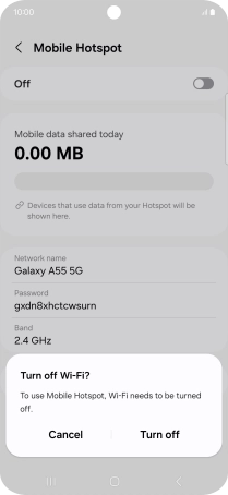 Key in the password for your Wi-Fi hotspot and establish the connection.