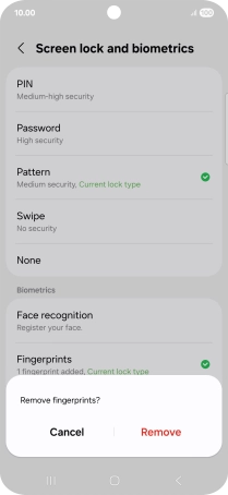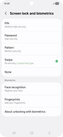 Press Screen lock and biometrics and key in the additional phone lock code you created earlier.