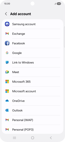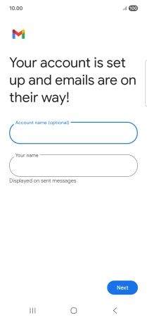 If this screen is displayed, you email account has been recognised and set up automatically. Follow the instructions on the screen to key in more information and finish setting up your phone.