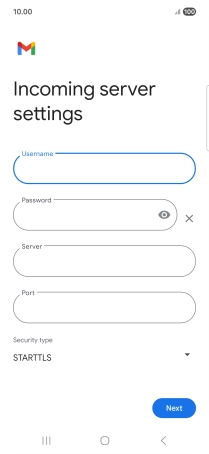 Press the field below "Server" and key in the name of your email provider's incoming server.