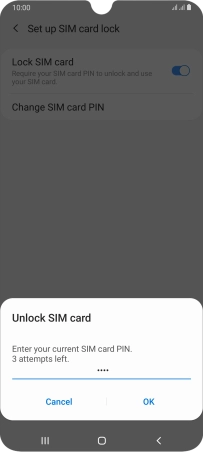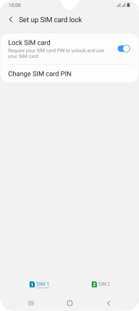 Press the indicator next to "Lock SIM card" to turn the function on or off.