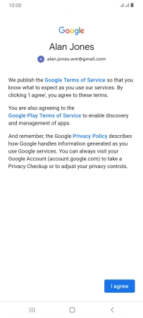 Press I agree and follow the instructions on the screen to select settings for your Google account.
