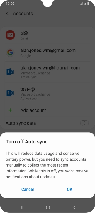 Press the indicator next to "Auto sync data" to turn the function on or off.
