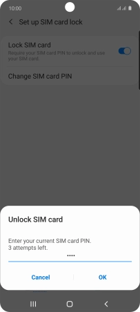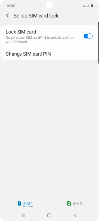Press the indicator next to "Lock SIM card" to turn the function on or off.