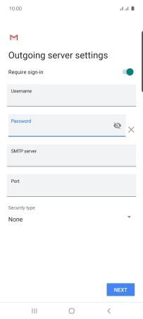 Press the field below "Username" and key in the username for your email the email provider's outgoing server.