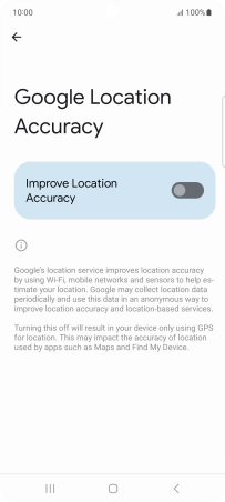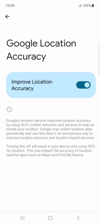 If you press the indicator next to "Improve Location Accuracy" to turn off the function, your phone can find your exact position using the GPS satellites but it may take longer as there is no access to supplementary information from the mobile network or nearby Wi-Fi networks.