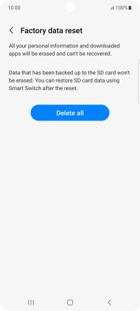 Press Delete all. Wait a moment while the factory default settings are restored. Follow the instructions on the screen to set up your phone and prepare it for use.