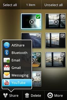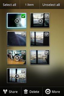 Press and hold the required picture or the required video clip until the picture or video clip is ticked (V).