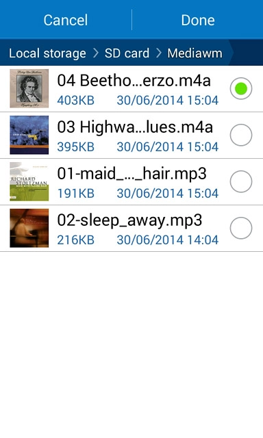 Press the required audio file.