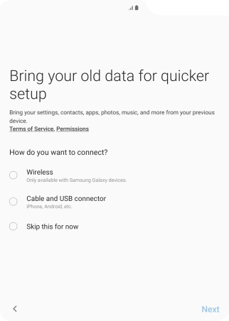 Press Next and follow the instructions on the screen to transfer content from another phone.