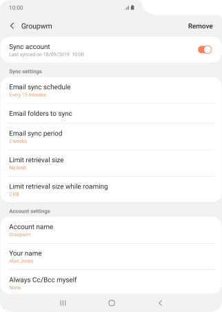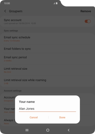 Key in the required name for the email account and press Done.