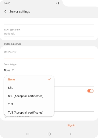 10. Enter outgoing server