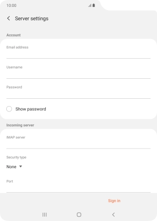 Press the field below "IMAP server" and key in the name of your email provider's incoming server.