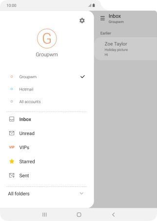 Press the indicator next to "Show notifications" below the required email account to turn the function on or off.