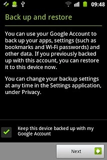 Press the box next to Keep this device backed up with my Google Account to turn the function on or off.