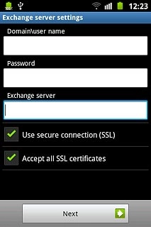 Press the field below Exchange server and key in the server address.