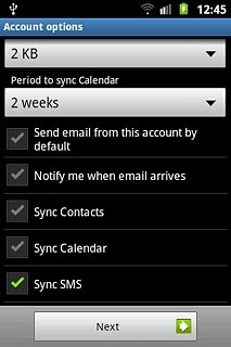 Select settings for synchronising new email messages
