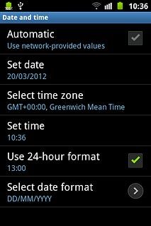 Press Automatic to turn automatic date and time update on or off.