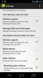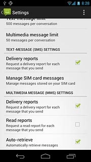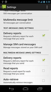 Press Delivery reports below MULTIMEDIA MESSAGE (MMS) SETTINGS to turn the function on or off.