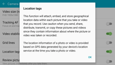 Press the indicator next to "Location tags" to turn the function on or off.