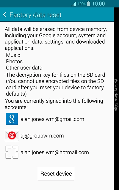 Restore factory default settings - Samsung Galaxy Note Edge