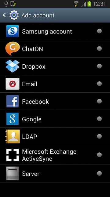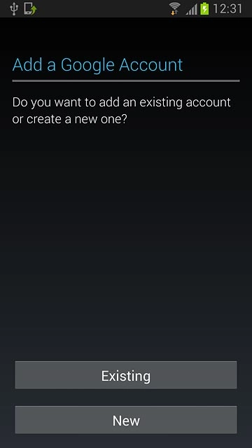 To create a new account: press New. Follow the instructions on the display to create a new account.