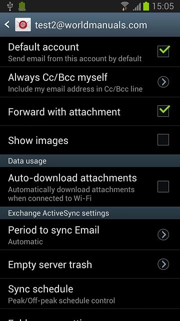 Press Default account to select the email account as your default account.