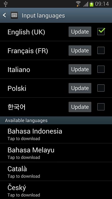 The following steps show you how to change writing language, turn on word suggestion and write text.