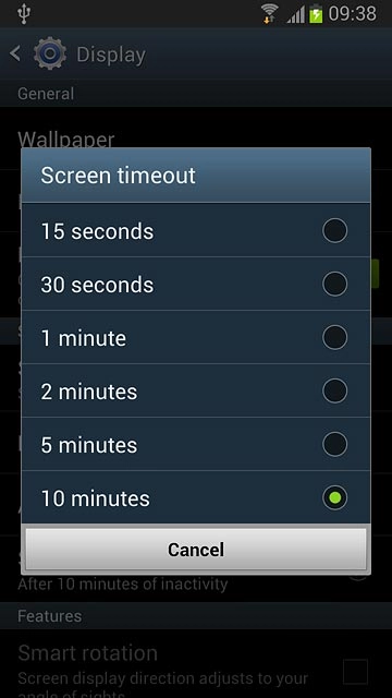Press Screen timeout.