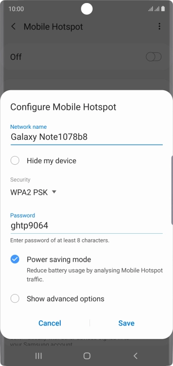 I can't use my Samsung Galaxy Note10 Android 9.0 as a Wi-Fi hotspot