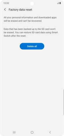 Press Delete all. Wait a moment while the factory default settings are restored. Follow the instructions on the screen to set up your phone and prepare it for use.