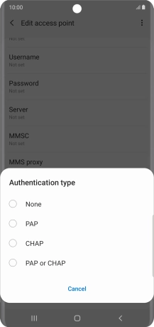 7. Enter APN type